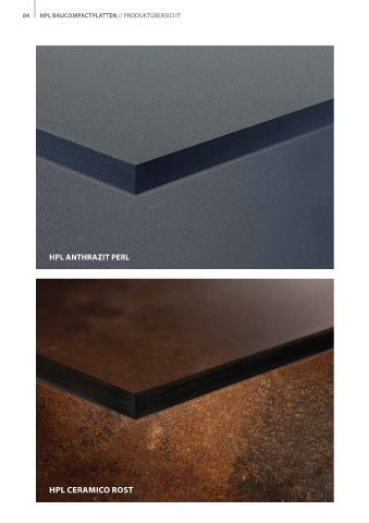 84 HPL BAUCOMPACTPLATTEN // PRODUKTÜBERSICHT HPL ANTHRAZIT PERL HPL CERAMICO ROST