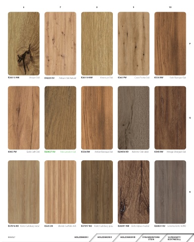 R20315 NW Artisan Oak D4225 OV Artisan Oak Natural R20119 NW American Oak K365 PW Coast Evoke Oak K535 RW Gold Baroque Oak