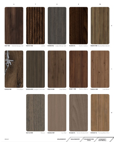 K537 RW Ristretto Baroque Oak R30157 NW Caletta R50004 RU Sangha Wenge natur R42056 FL Kirsche Toulouse R30013 NW Altamira Walnut dunkel