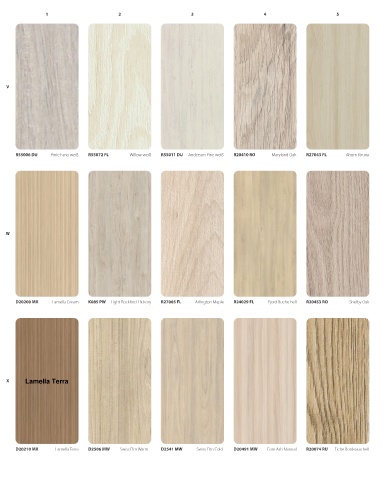 D20210 MX Lamella Terra D2506 MW Swiss Elm Warm D2541 MW Swiss Elm Cold D20491 MW Core Ash Natural R20074 RU Eiche Bordeaux hell