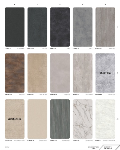D70561 TO Coco Tweed Creme D30100 TO Woven Cream D30501 TO Seaside Green D70601 VL Calacatta Oro D4448 VL Marmo Romeo White