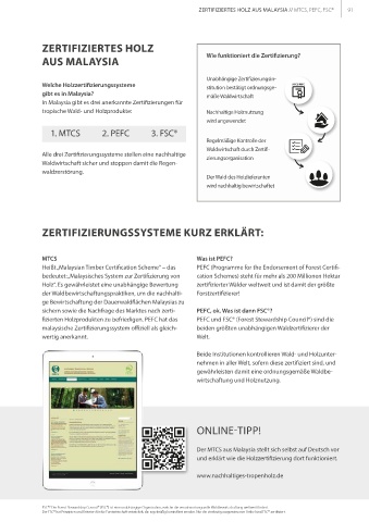 ZERTIFIZIERTES HOLZ AUS MALAYSIA // MTCS, PEFC, FSC® 91