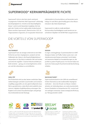 S Superwood kann als einziges Unternehmen der uperwood kann als einziges Unternehmen der an F Sägewerken bezogen und beim Zuschneiden traditionellen Imprägniermethoden – ohne