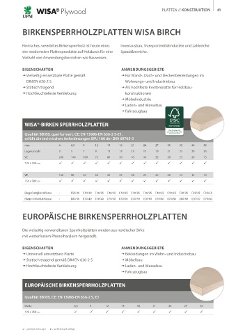 Qualität BB/BB, CE: EN 13986-EN 636-2 S, E1