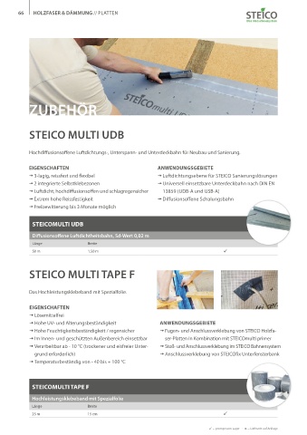 t Verarbeitbar ab - 10 °C (trockener und eisfreier Unter- t Stoß- und Anschlussverklebung im STEICO Bahnensystem