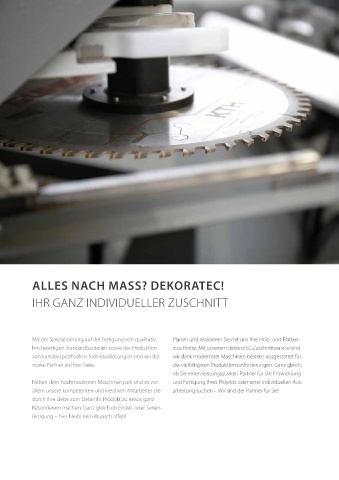 hochwertigen Standardbauteilen sowie der Produktion zuschnitte. Mit unserem dekoraTEC-Zuschnittservice sind