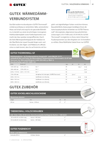 Holzfaserdämmplatte sowie Putzkomponenten und Zulassungen Z-33.47-660 und Z-33.43-942 für GUTEX