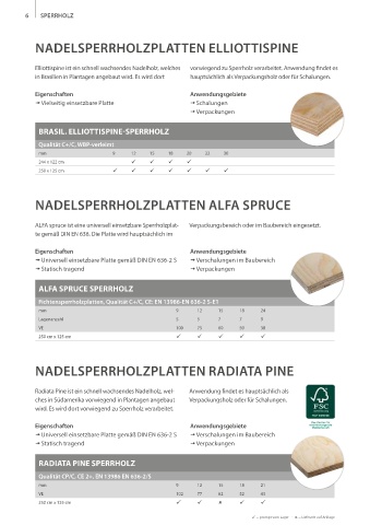 ALFA spruce ist eine universell einsetzbare Sperrholzplat- Verpackungsbereich oder im Baubereich eingesetzt.