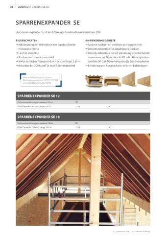 t Belastbar bis 200 kg/m² je nach Sparrenabstand t Erhöhung und Ausgleich von offenen Balkenlagen