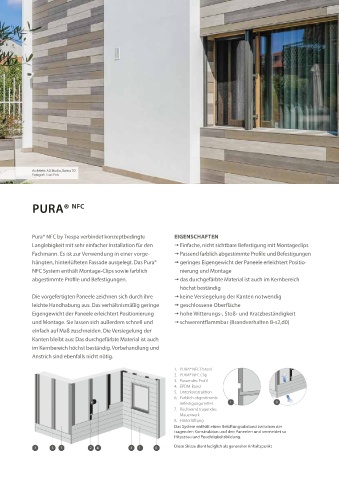 hängten, hinterlüfteten Fassade ausgelegt. Das Pura® t geringes Eigengewicht der Paneele erleichtert Positio-