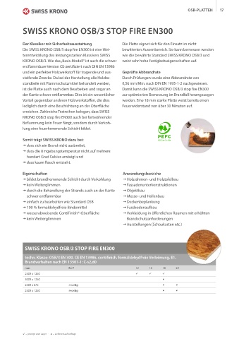 Die SWISS KRONO OSB/3 stop fire EN300 ist eine Wei- bewitterten Aussenbereich. Sie kann bemessen werden