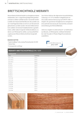 Lamellen der Holzart Dark Red Meranti. Die Lamellen wei- möglich. Die gesicherten Festigkeitswerte ermöglichen