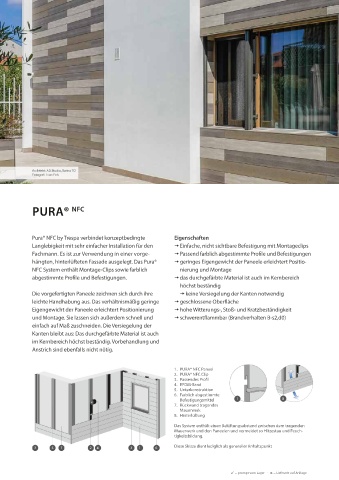 hängten, hinterlüfteten Fassade ausgelegt. Das Pura® t geringes Eigengewicht der Paneele erleichtert Positio-