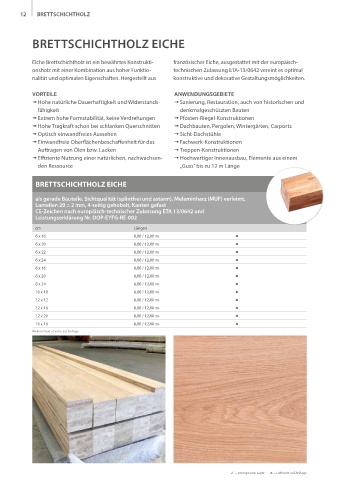Eiche Brettschichtholz ist ein bewährtes Konstrukti- fran zösischer Eiche, ausgestattet mit der europäisch-