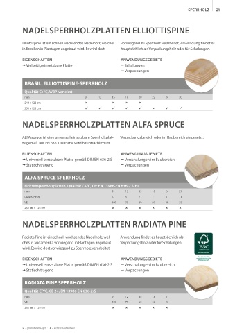 ALFA spruce ist eine universell einsetzbare Sperrholzplat- Verpackungsbereich oder im Baubereich eingesetzt.