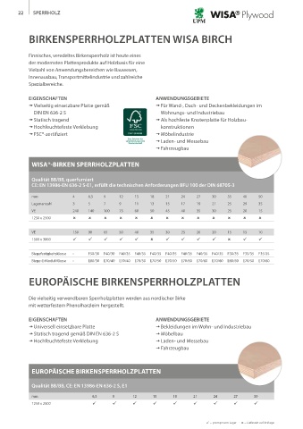 Qualität BB/BB, CE: EN 13986-EN 636-2 S, E1