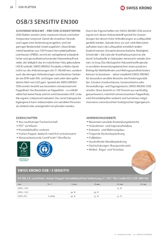 SCHONEND VERLEIMT – FREI VON SCHADSTOFFEN Durch die Eigenschaften der SWISS KRONO OSB sensitiv