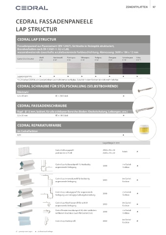 Cedral Lap Zubehör Farbton 250 Stück terkonstruktion F 4 x 30 – K15*** 250 Stück CZNAMTO4-30 35 F 96,80 DACH- UND FASSADENPLATTEN