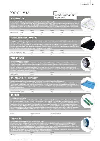 terdeck- / Unterspannbahnen (pro clima SOLITEX) oder Holzfaser- und MDF-Platten einsetzbar. Für ein hohes Bauscha-
