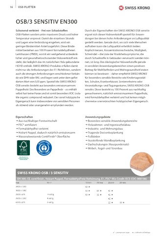 HCHO enthält. SWISS KRONO-Produkte erfüllen damit in sensiblen Anwendungsbereichen einen positiven
