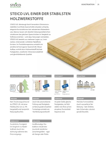 da STEICO LVL mit einer Prüfung und Festigkeits- Festigkeiten, da Fehl- durch wasserfeste Ver-