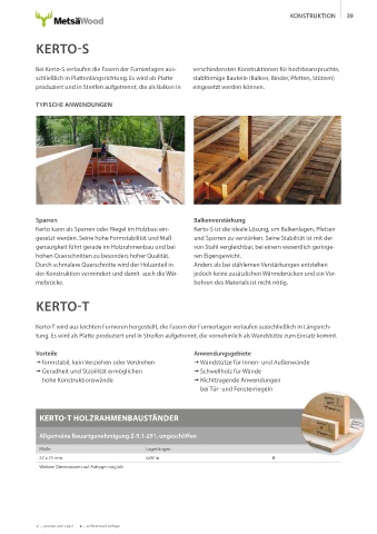 Bei Kerto-S verlaufen die Fasern der Furnierlagen aus- verschiedensten Konstruktionen für hochbeanspruchte,