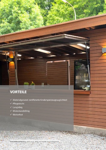 VORTEILE Materialgesund: zertifizierte Kinderspielzeugtauglichkeit Pflegeleicht Langlebig Widerstandsfähig Wetterfest RHOMBUSPROFIL (20,5 X 81 MM) IN FARBE NATURBRAUN