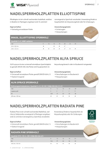 ALFA spruce ist eine universell einsetzbare Sperrholzplat- Verpackungsbereich oder im Baubereich eingesetzt.
