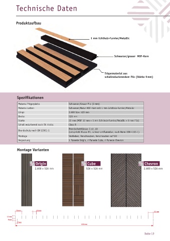 Stärke 22 mm (MDF 12 mm + 1 mm Echtholz-Furnier/Metallic + 9 mm Filz)
