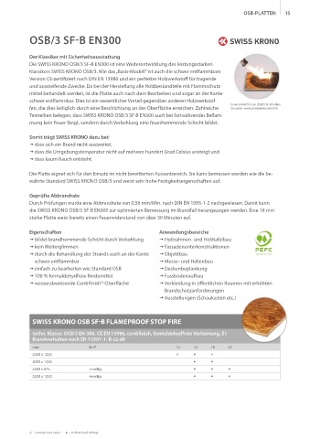 die SWISS KRONO OSB/3 SF-B EN300 zur optimierten Bemessung im Brandfall herangezogen werden. Eine 18 mm