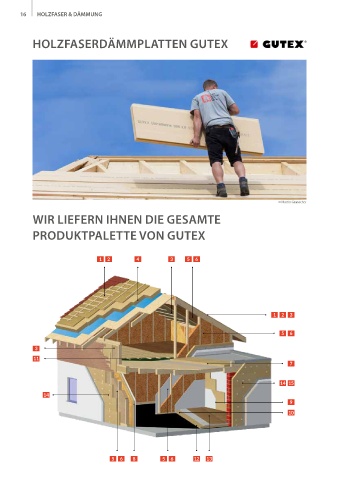 16 HOLZFASER & DÄMMUNG HOLZFASERDÄMMPLATTEN GUTEX © Martin Granacher WIR LIEFERN IHNEN DIE GESAMTE PRODUKT PALETTE VON GUTEX 1 2 4 3 5 6 1 2 3 5 6 3 11 7 14 15 14 9 10 5 6 8 5 6 12 13