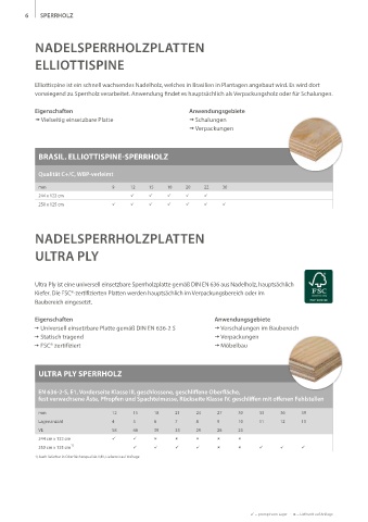 Kiefer. Die FSC®-zertifizierten Platten werden hauptsächlich im Verpackungsbereich oder im