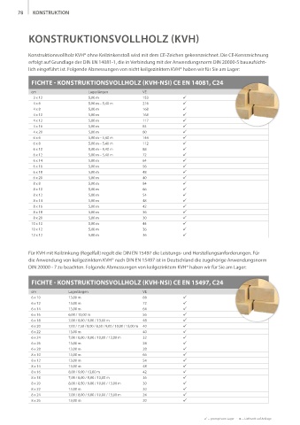 DIN 20000 - 7 zu beachten. Folgende Abmessungen von keilgezinktem KVH® haben wir für Sie am Lager: