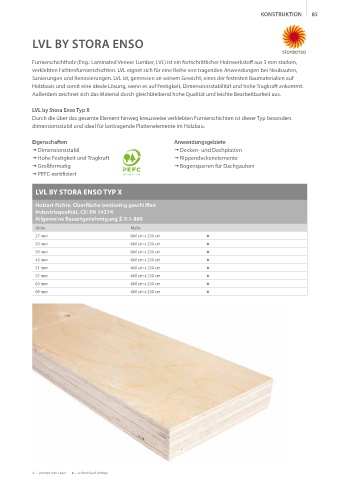 verklebten Fichtenfurnierschichten. LVL eignet sich für eine Reihe von tragenden Anwendungen bei Neubauten,