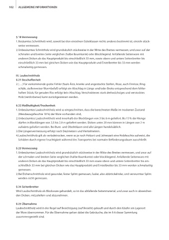 2. Unbesäumtes Laubschnittholz wird innerhalb der Blocklängen von 3 bis 6 m geliefert. Bis 15 % der Menge