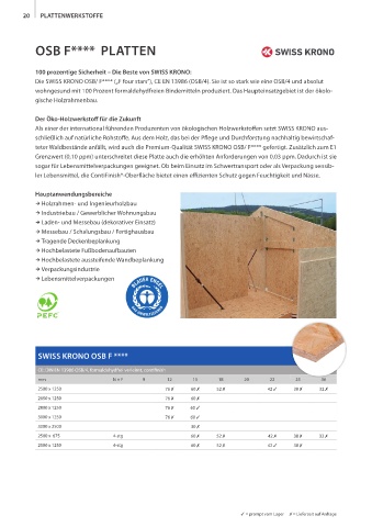 teter Waldbestände anfällt, wird auch die Premium-Qualität SWISS KRONO OSB/ F**** gefertigt. Zusätzlich zum E1