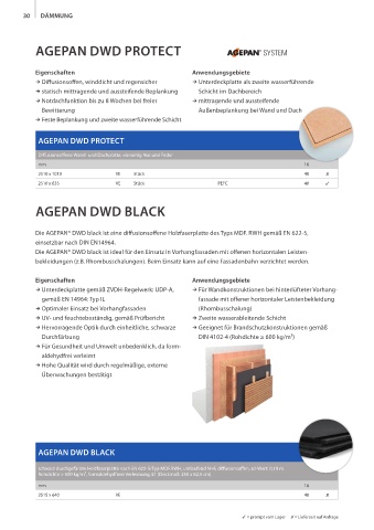 Die AGEPAN® DWD black ist eine diff usionsoff ene Holzfaserplatte des Typs MDF. RWH gemäß EN 622-5,
