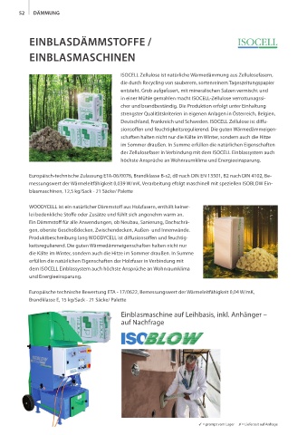messungswert der Wärmeleitfähigkeit 0,039 W/mK, Verarbeitung efolgt maschinell mit speziellen ISOBLOW Ein-