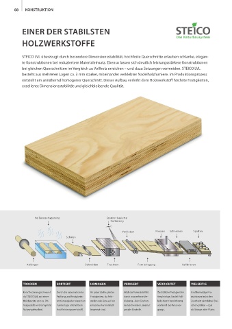 da STEICO LVL mit einer Prüfung und Festigkeits- Festigkeiten, da Fehl- durch wasserfeste Ver- Vergleich zu Nadel-Voll- duktion erlaubt den