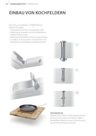 Beim Einbau von Kochfeldern in STARON® Platten ist