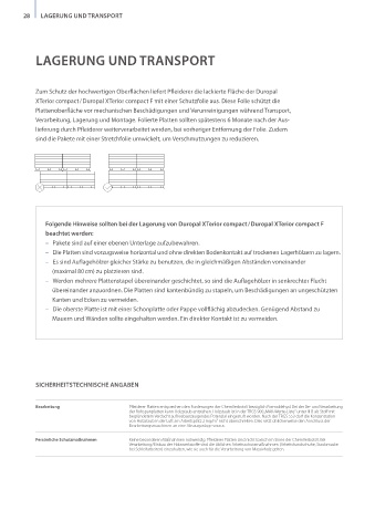 – Die Platten sind vorzugsweise horizontal und ohne direkten Bodenkontakt auf trockenen Lagerhölzern zu lagern.