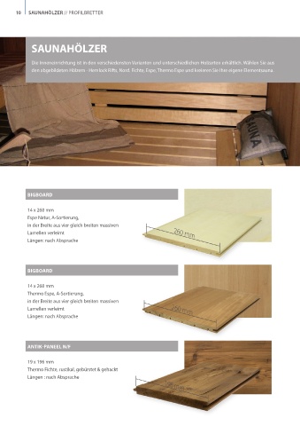 den abgebildeten Hölzern - Hemlock Rifts, Nord. Fichte, Espe, Thermo Espe und kreieren Sie Ihre eigene Elementsauna.