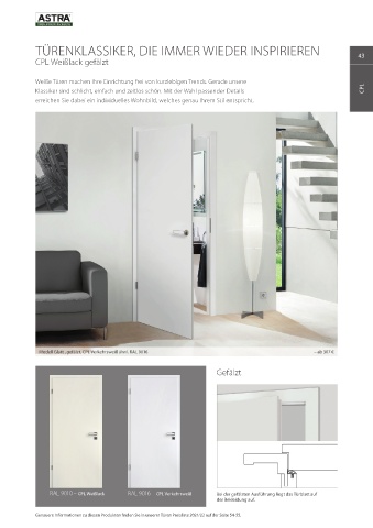 RAL 9010 – CPL Weißlack RAL 9016 – CPL Verkehrsweiß Bei der gefälzten Ausführung liegt das Türblatt auf
