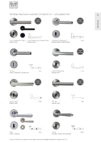 Genauere Informationen zu diesen Produkten fi nden Sie in unserer Beschlags Preisliste 2021/22 auf der Seite 15-19.