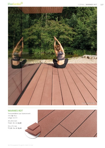 Warmes rot CEDRAL | WARMES ROT 127 Cedral Warmes rot WARMES ROT Terrassen dielen aus Faserzement mit Clip-Nut, Länge: 3,15 m 20 x 84,5 mm TR10S lfm € 16,49 20 x 175 mm TR10B lfm € 26,49 alle Preisangaben inkl. gesetzl. MwSt. in euro.
