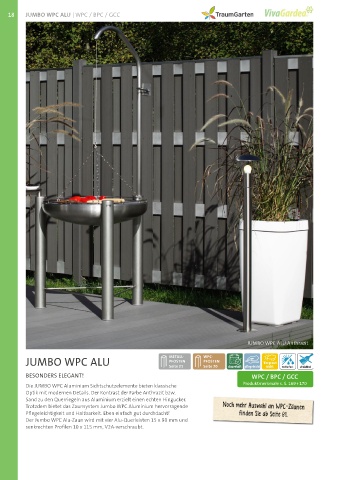 Die JUMBO WPC Aluminium Sichtschutzelemente bieten klassische Produktmerkmale s. S. 169 + 170