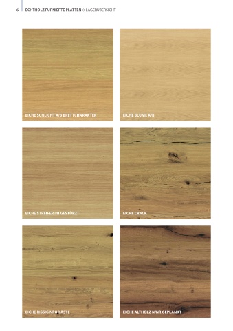 6 ECHTHOLZ FURNIERTE PLATTEN // LAGERÜBERSICHT EICHE SCHLICHT A/B BRETTCHARAKTER EICHE BLUME A/B EICHE STREIFER I/II GESTÜRZT EICHE CRACK EICHE RISSIG NPUR ÄSTE EICHE ALTHOLZ N/NR GEPLANKT