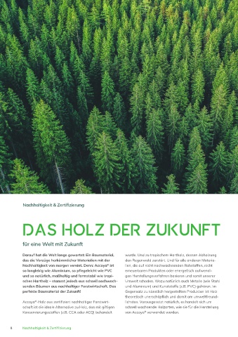 Nachhaltigkeit von morgen vereint. Denn: Accoya ist lien, die auf nicht nachwachsenden Rohstoffen, nicht