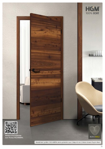 Weitere Informationen zum Thema FACHWERK. HEIMATHOLZ Modell Glatt | gefälzt | FACHWERK Lärche geräuchert quer | Zarge 60 mm | Drücker Arondi ›Plug In‹ Black 55