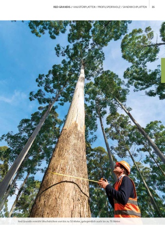 RED GRANDIS // HAUSTÜRPLATTEN / PROFILSPERRHOLZ / SANDWICHPLATTEN 35 Red Grandis erreicht Wuchshöhen von bis zu 50 Meter, gelegentlich auch bis zu 70 Meter.